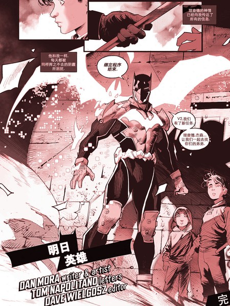 Dan Mora自编自绘的黑与白作品《明日英雄》,在故事中他给了蝙蝠侠一只能够变换成披风的蝙蝠使魔[亦或是宠物蝙蝠(pet bat)XD] 蝙蝠侠同人漫画。